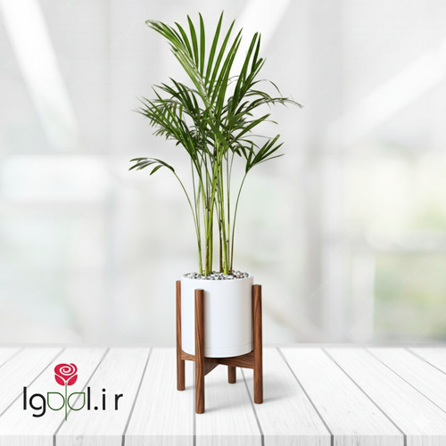 گیاه نخل اریکا با گلدان پلیمری و پایه چوبی