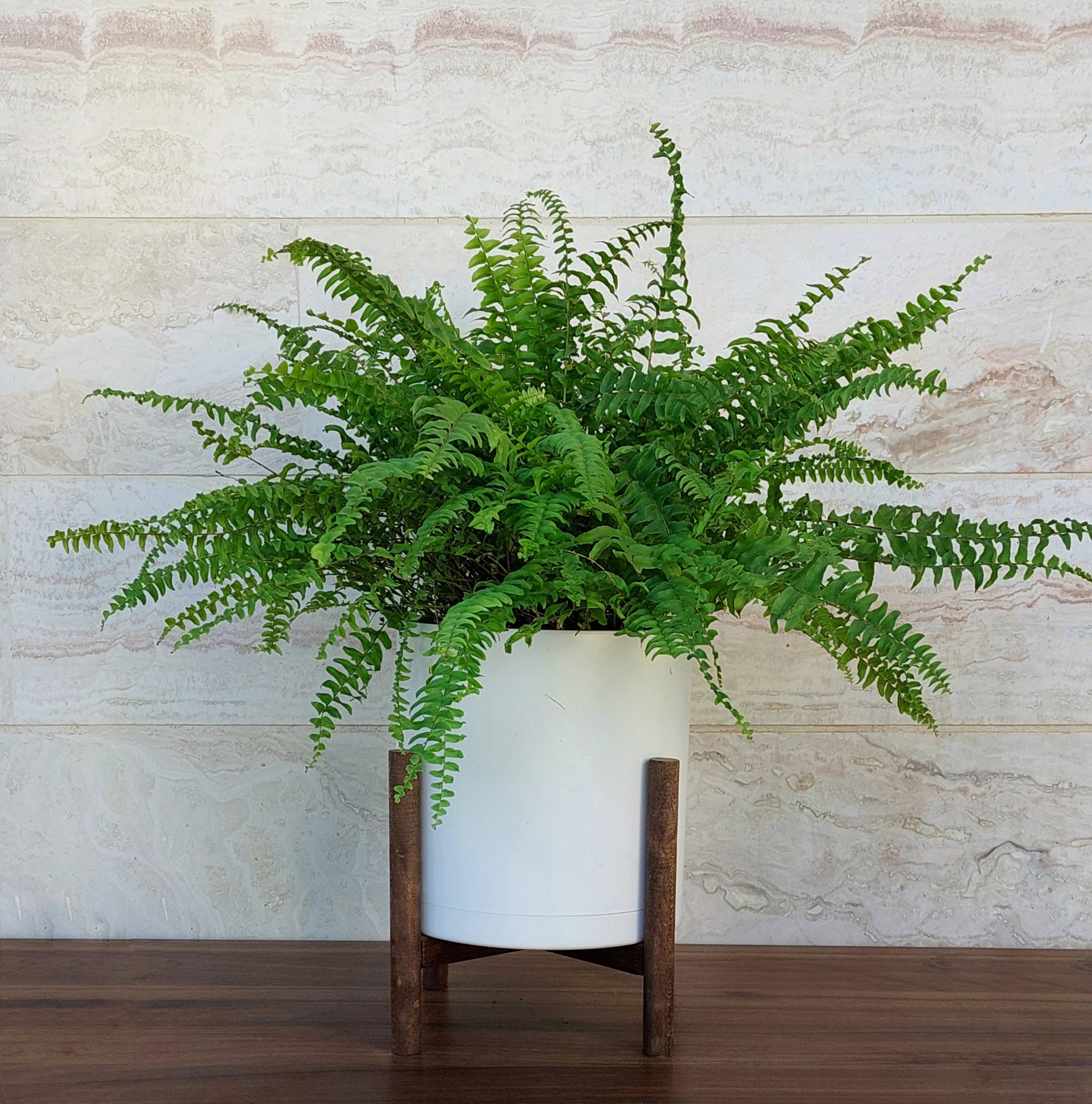 گیاه سرخس بوستون با گلدان پلیمری و پایه چوبی