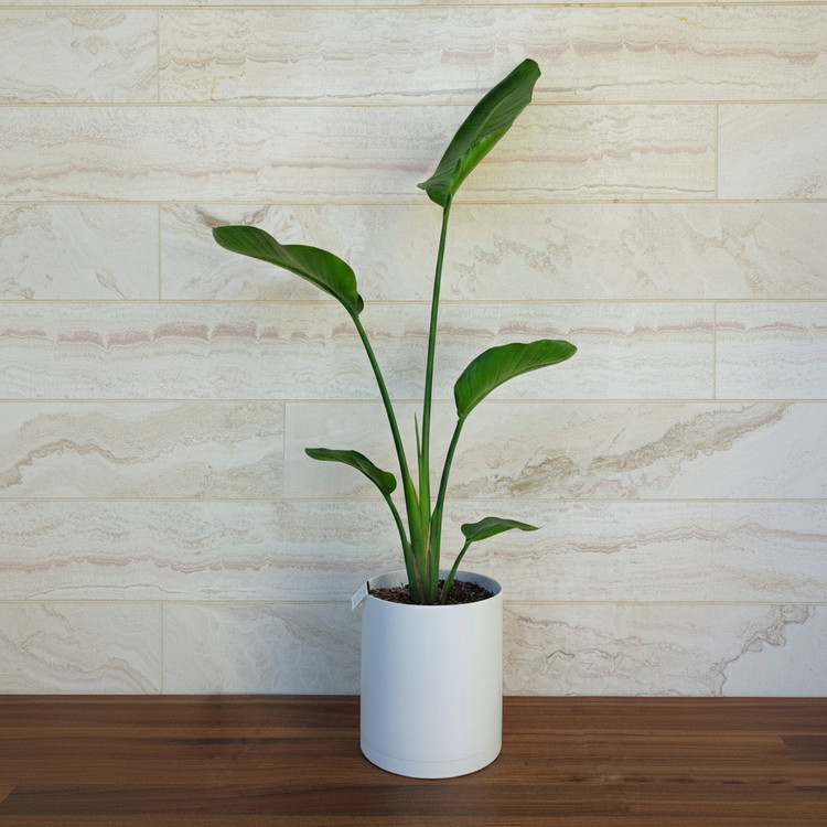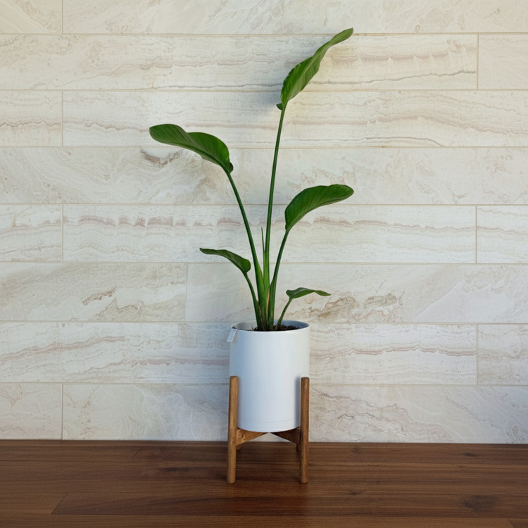 گیاه پرنده بهشتی نیکولای با گلدان پلیمری و پایه چوبی