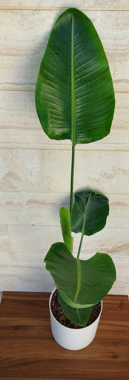 برگها بزرگ، سبز تیره و شبیه برگهای موز هستند.