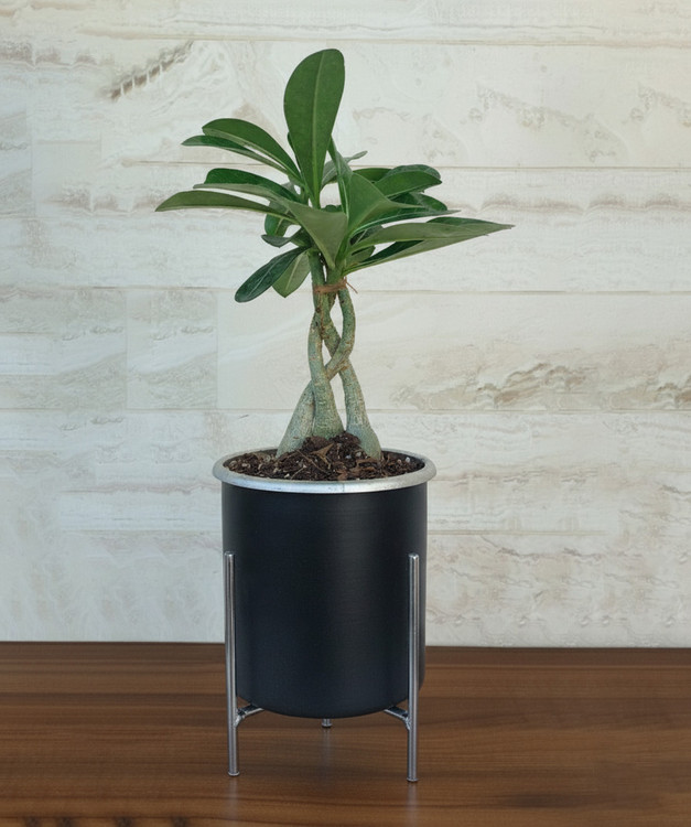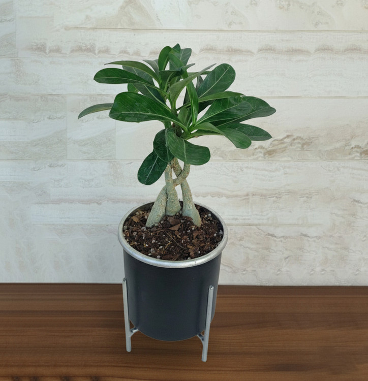 گیاه آدنیوم بافت با گلدان فلزی پایه دار