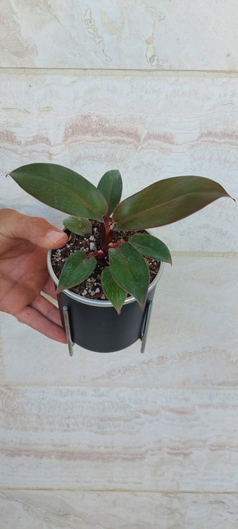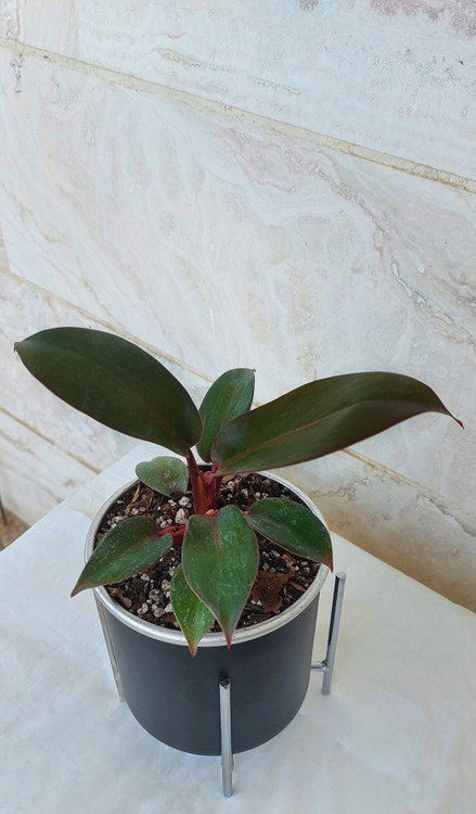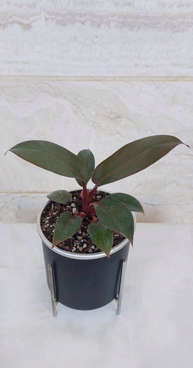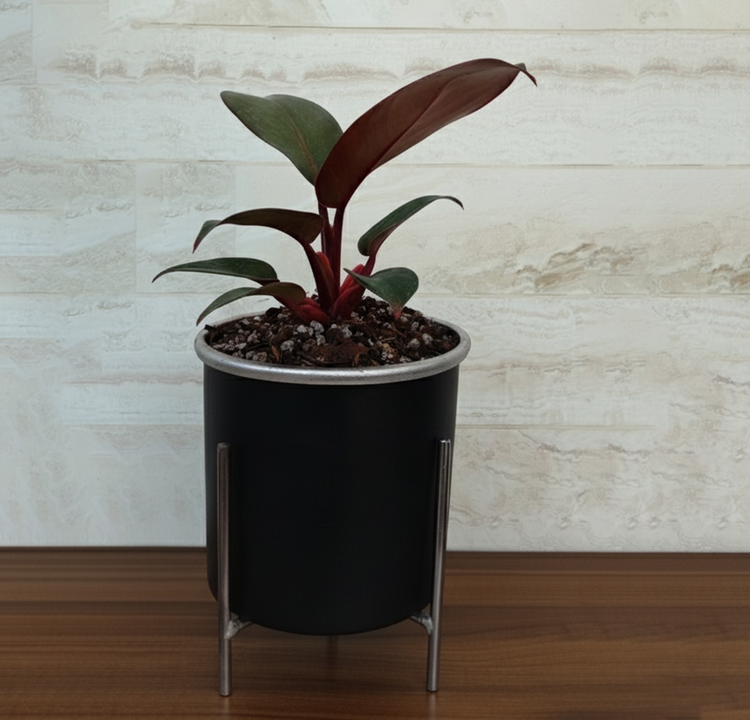 گیاه فیلودندرون رد کنگو همراه با گلدان آلومینیومی پایه دار