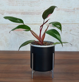 گیاه فیلودندرون پینک پرنسس همراه با گلدان آلومینیومی پایه دار