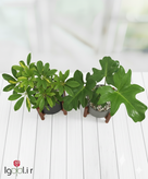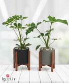 گیاه برگ انجیری و شفلرا با گلدان پلیمری و پایه چوبی