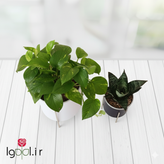 گیاه پتوس و سانسوریا با گلدان فلزی پایه دار