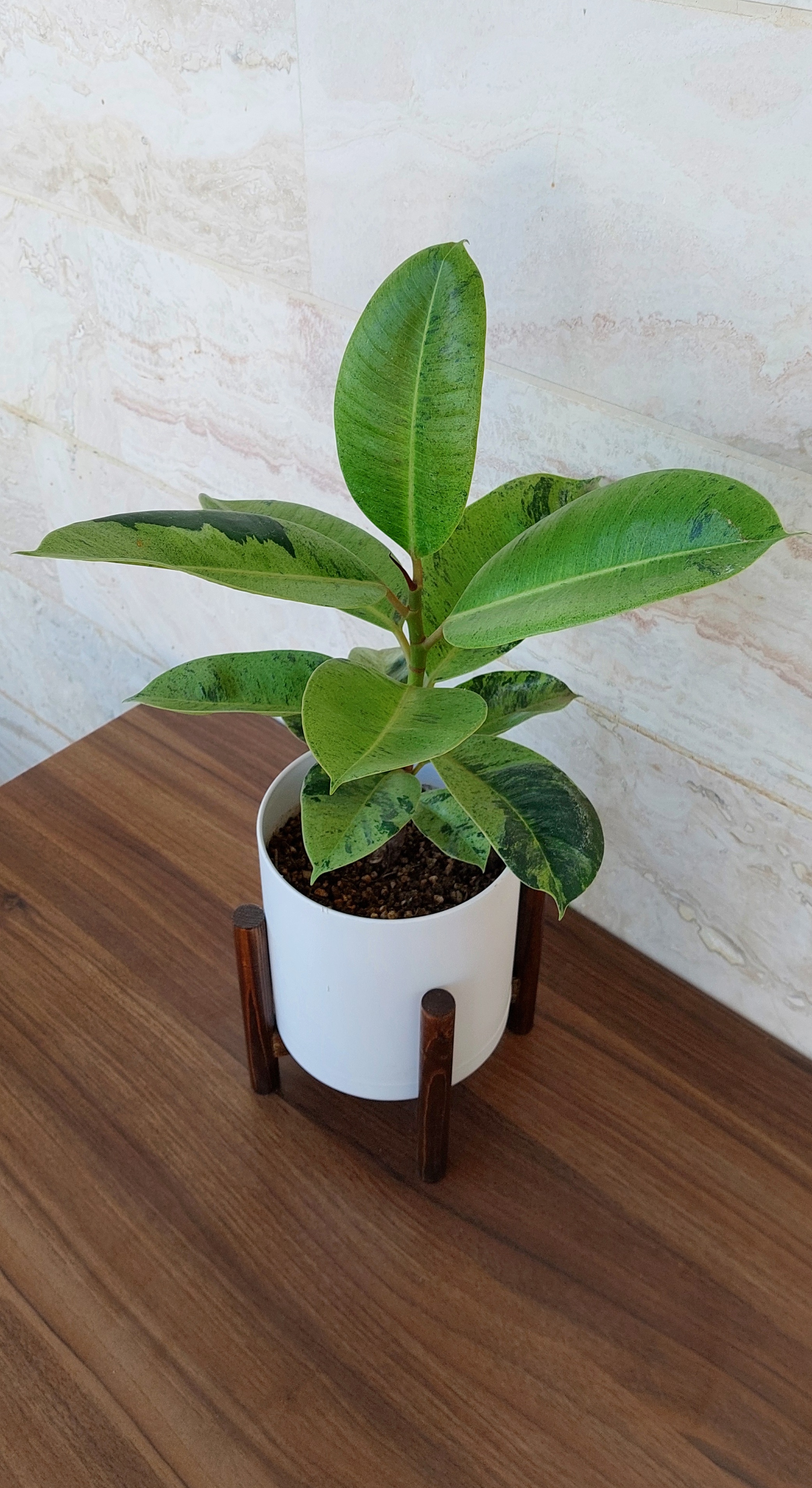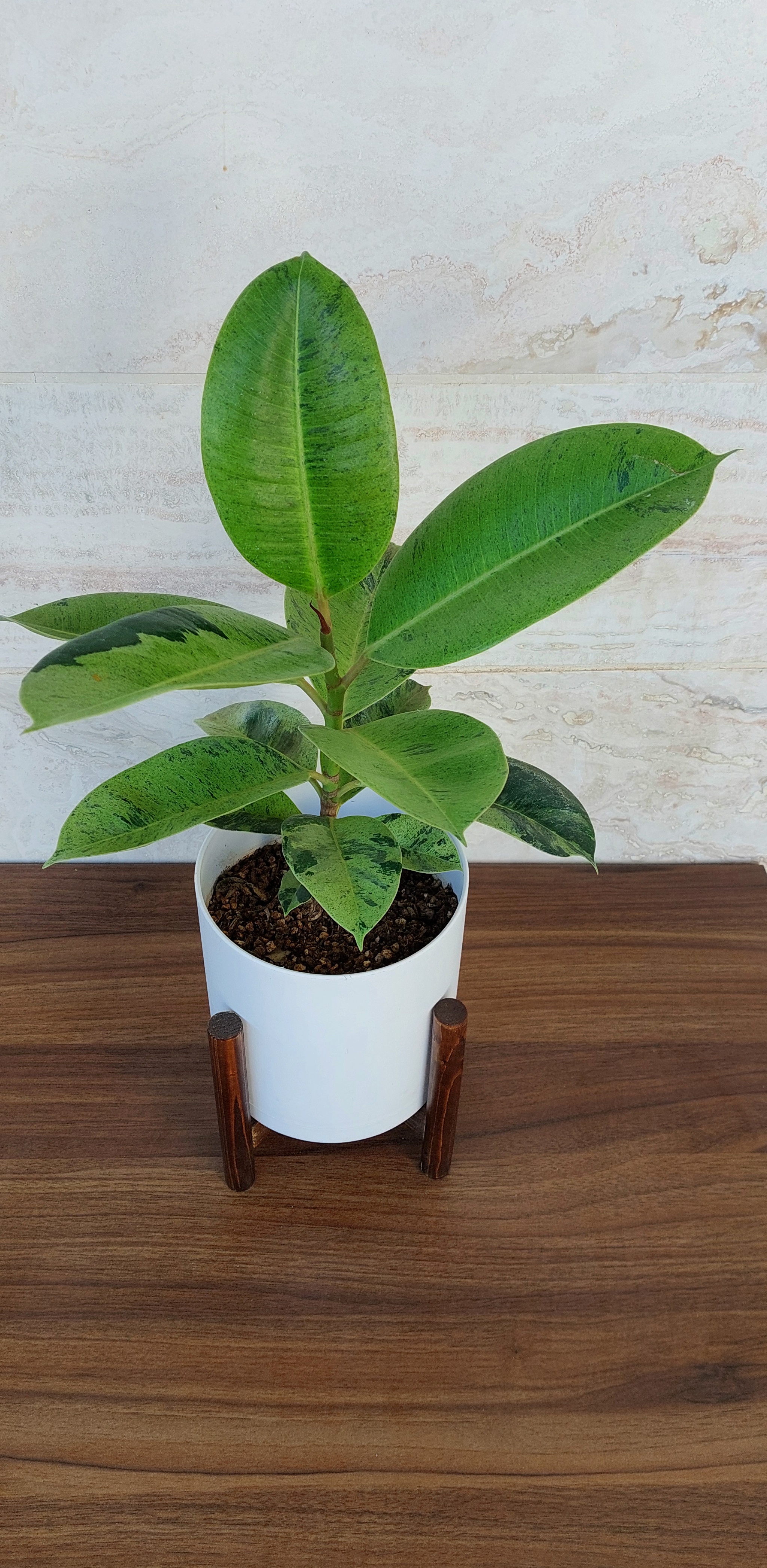 گیاه فیکوس ببری با گلدان پلیمری و پایه چوبی
