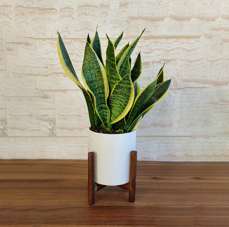 گیاه سانسوریا کرواتی با گلدان پلیمری و پایه چوبی