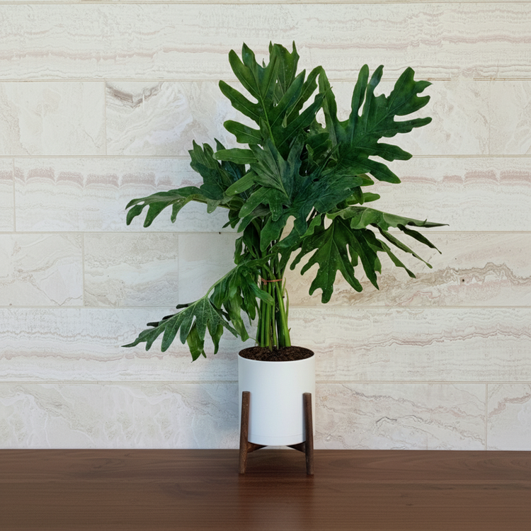 گیاه فیلودندرون سلوم با گلدان پلیمری و پایه چوبی