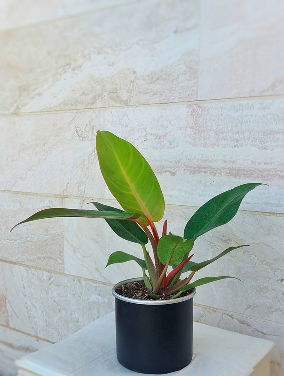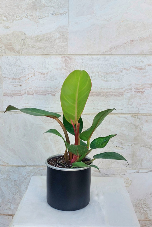 گیاه فیلودندرون پرتقالی با گلدان آلومینیومی