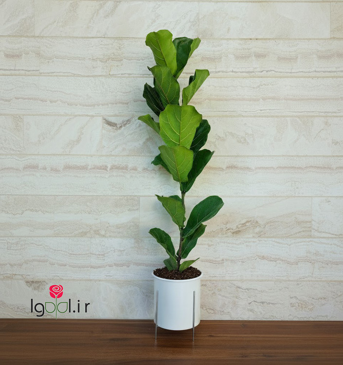 گیاه فیکوس لیراتا با گلدان آلمینیومی و پایه فلزی