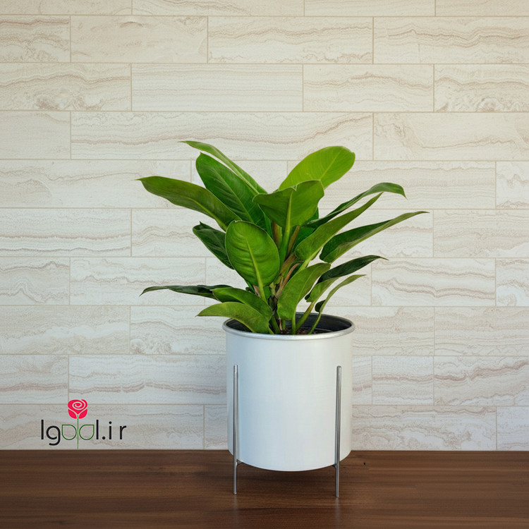 گیاه فیلودندرون لیمویی نئون با گلدان آلمینیومی و پایه فلزی