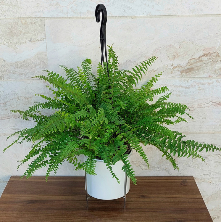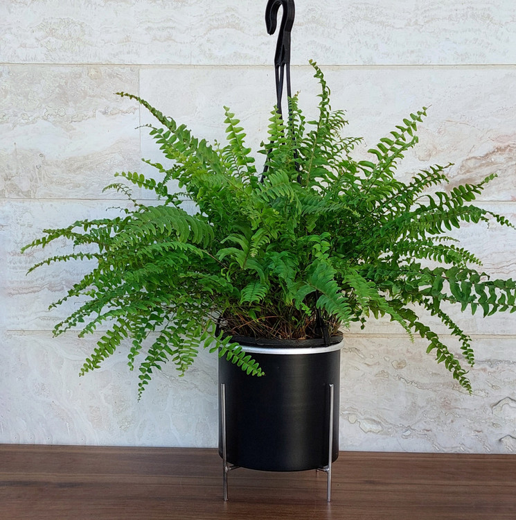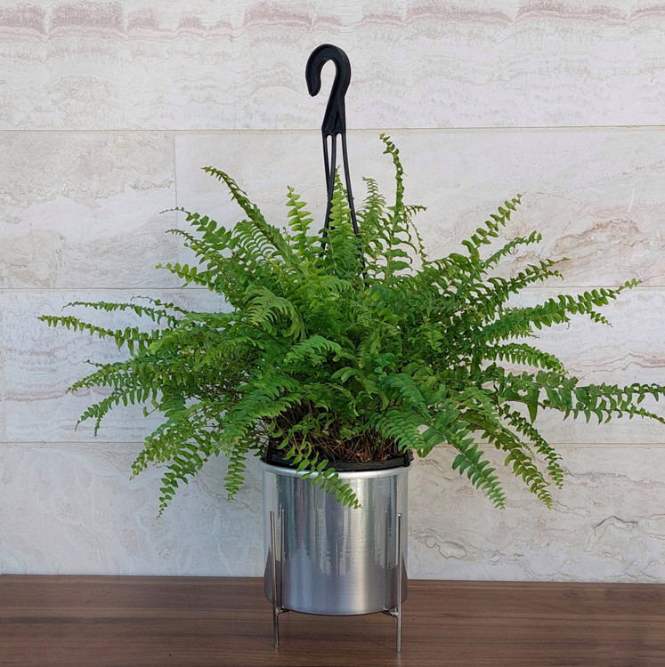 گیاه سرخس بوستون با گلدان آلمینیومی و پایه فلزی