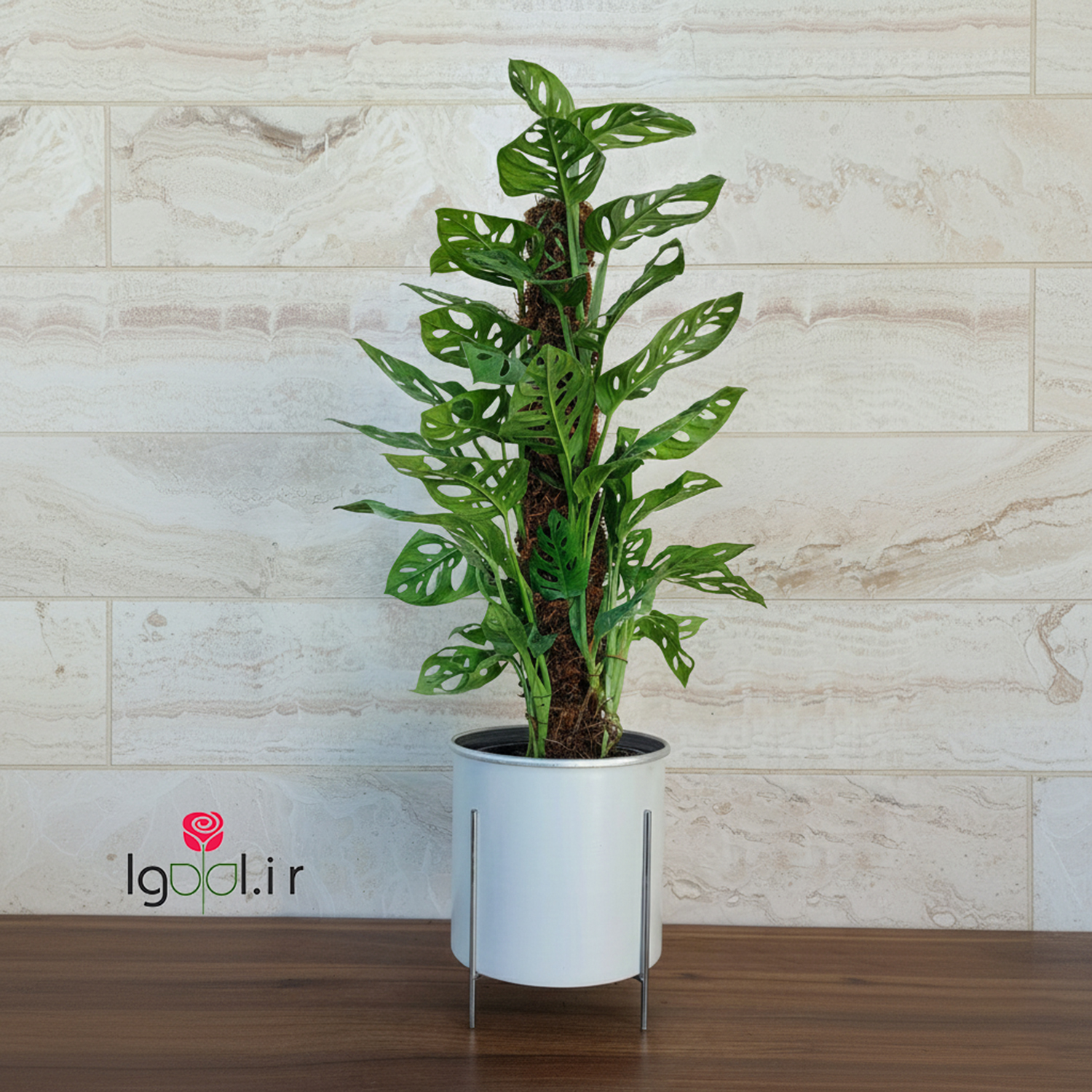 پتوس حصیری چوبدار با گلدان آلمینیومی و پایه