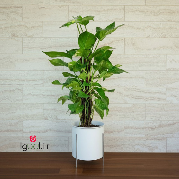 پتوس برگ پهن با گلدان آلمینیومی و پایه فلزی