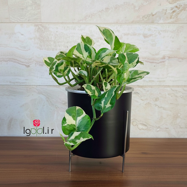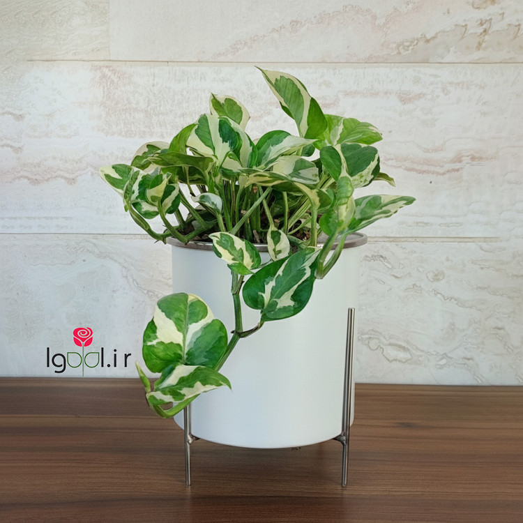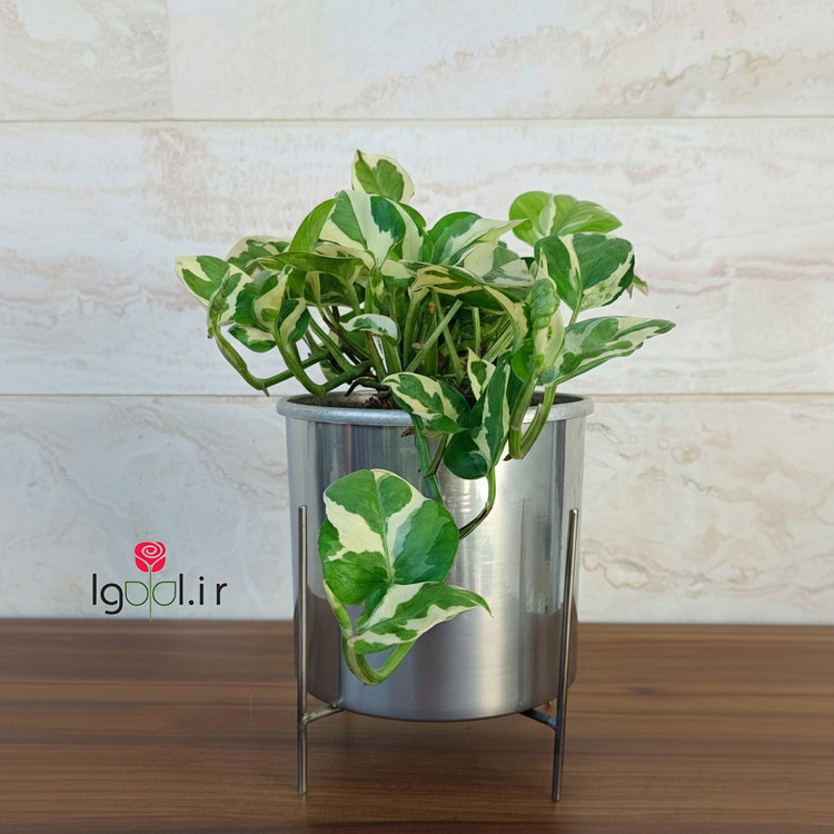 گیاه پتوس ارتشی با گلدان آلمینیومی و پایه فلزی