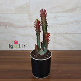 گیاه کاکتوس افوربیا قرمز با گلدان آلمینیومی