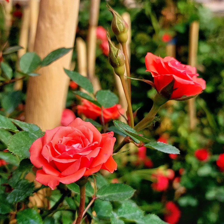 گل رز رونده هلندی ساناز قرمز با ارتفاع حدود 90 سنتی متر