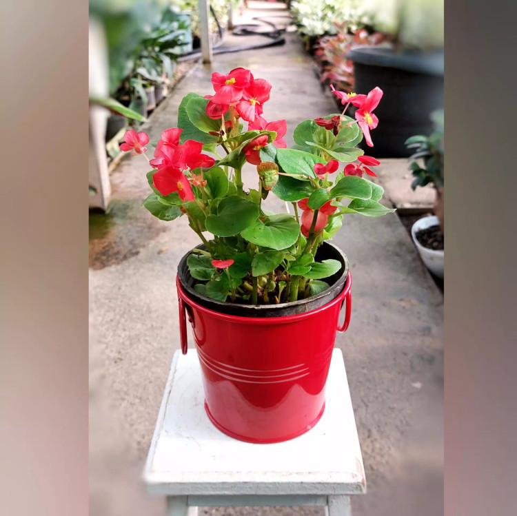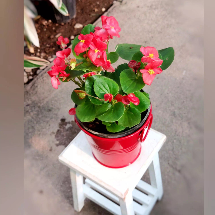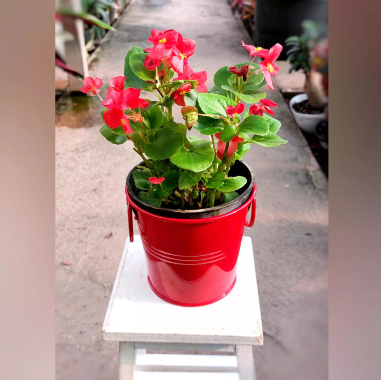 گل بگونیا عروس به همراه گلدان فلزی بسیار زیبا و با کیفیت