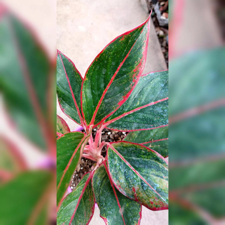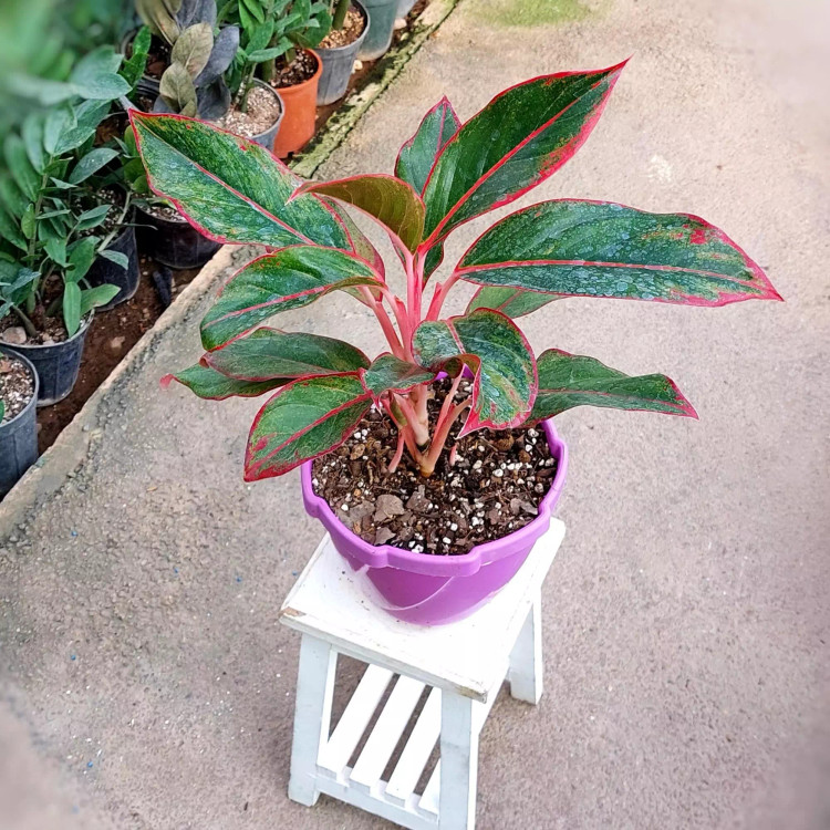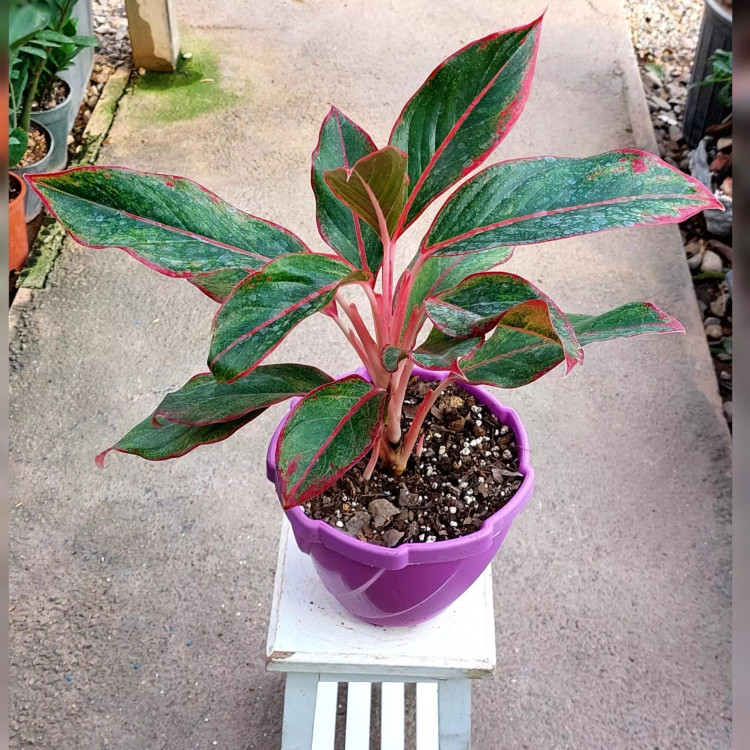 آگلونما قرمز به همراه گلدان پلاستیکی