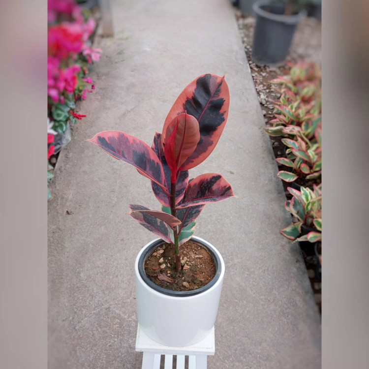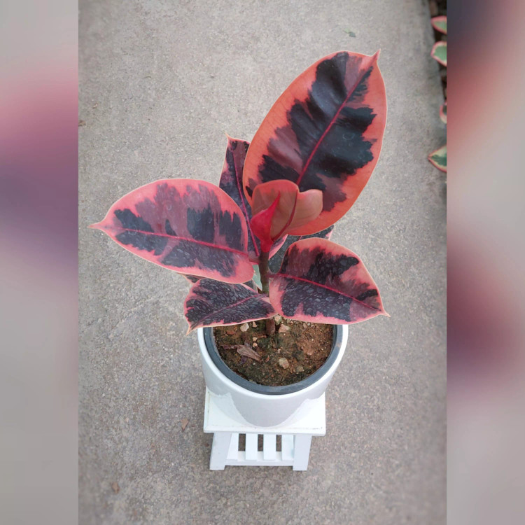 گیاه فیکوس شرابی با گلدان سرامیکی