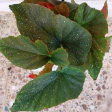 بگونیا بال فرشته گیاه آپارتمانی با برگهای خالدار و گلهای صورتی خوشه ای