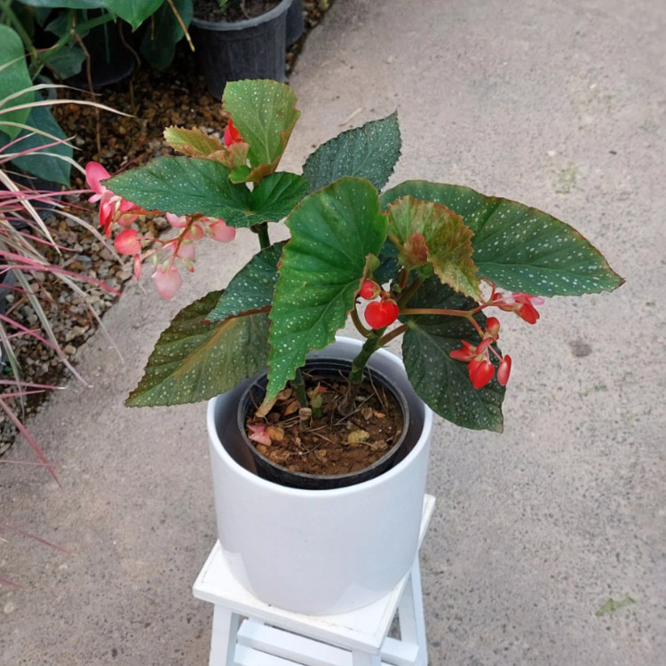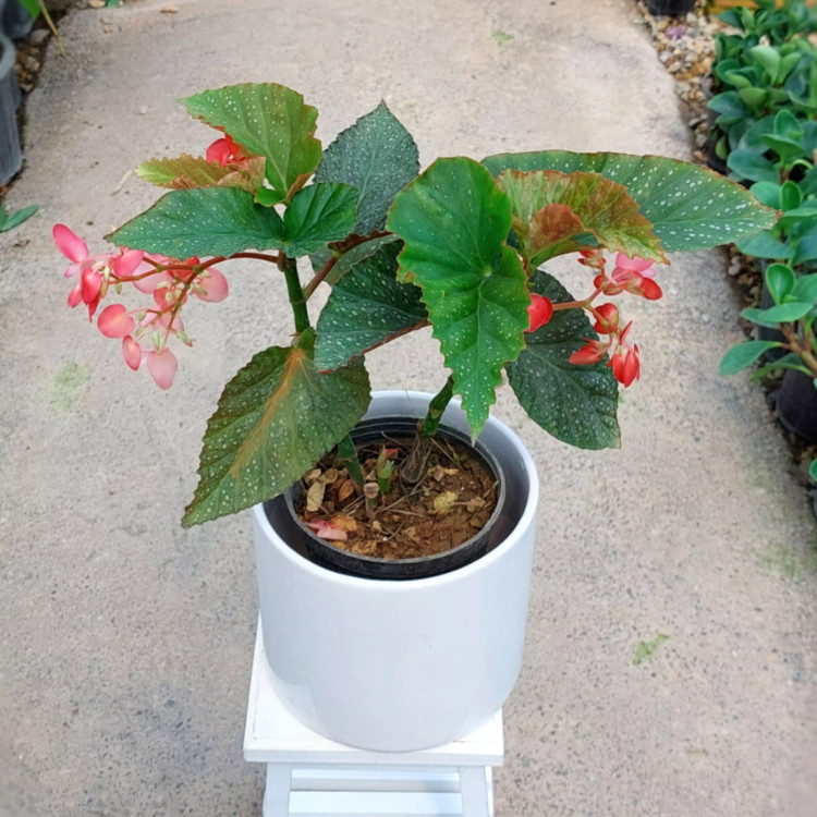 گیاه بگونیا هلندی ( بگونیا بال فرشته ) با گلدان سرامیکی