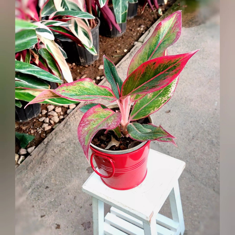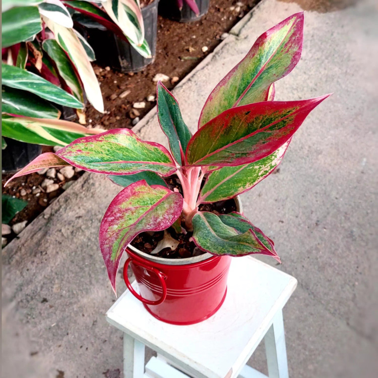 هدیه یلدایی گل آگلونما قرمز به همراه گلدان فلزی بسیار زیبا و با کیفیت