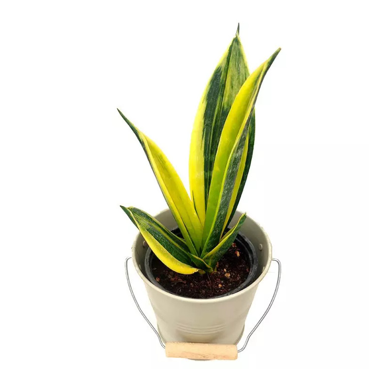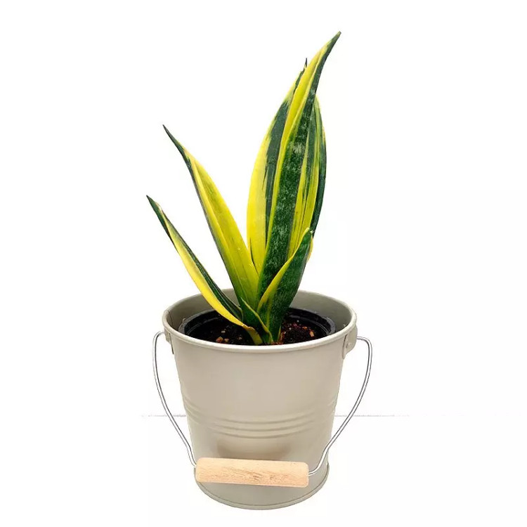 سانسوریا گلد فلیم گیاه آپارتمانی با گلدان فلزی مقاوم