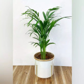 گیاه نخل اریکا همراه با گلدان فلزی پایه دار با قطر 17 سانتی متر