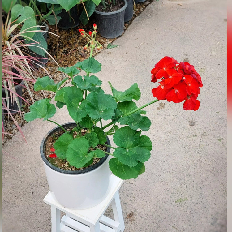 گیاه شمعدانی هلندی با گلدان سرامیکی