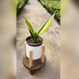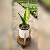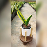 گیاه سانسوریا گلد فلیم به همراه گلدان پلیمری نشکن و زیر گلدانی