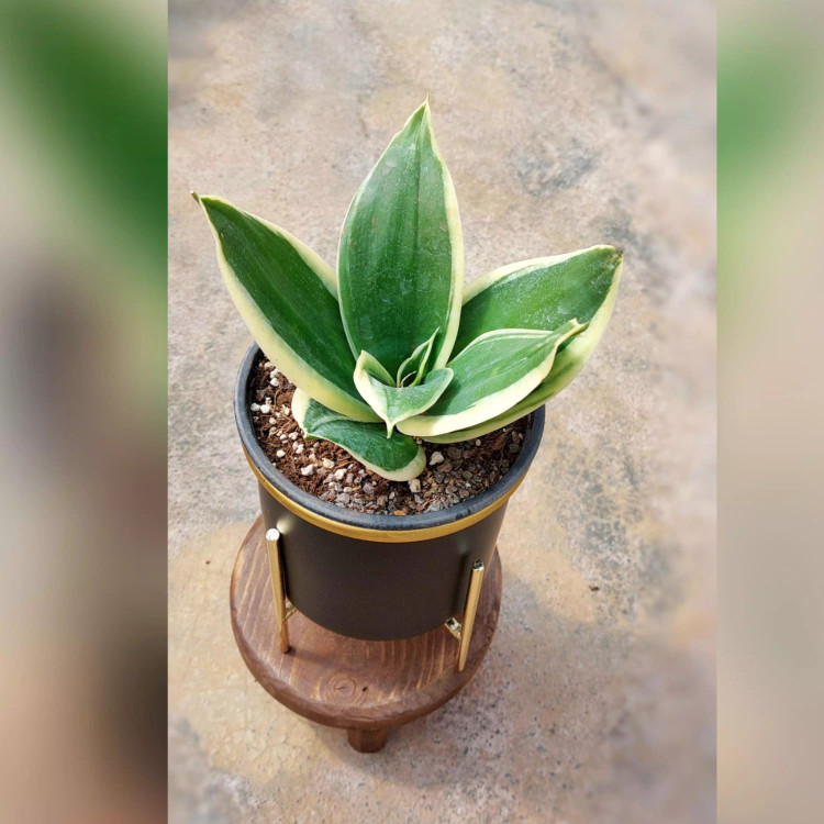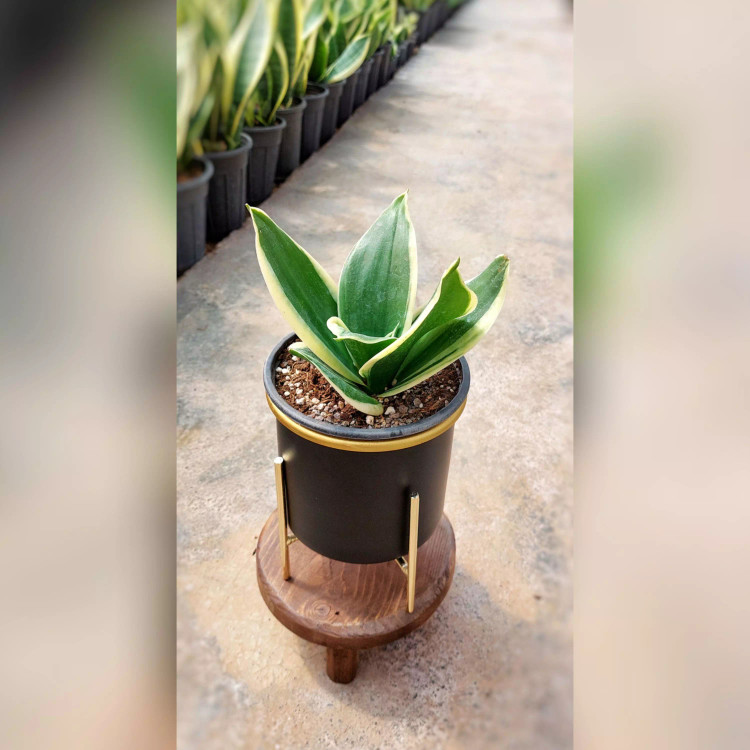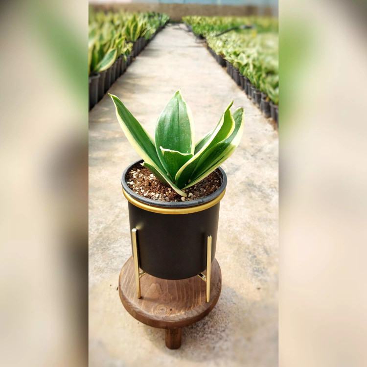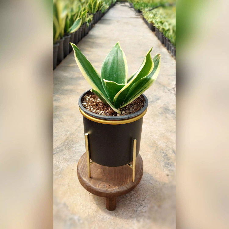 گیاه سانسوریا بلک گلد به همراه گلدان آلومینیومی با پایه فلزی