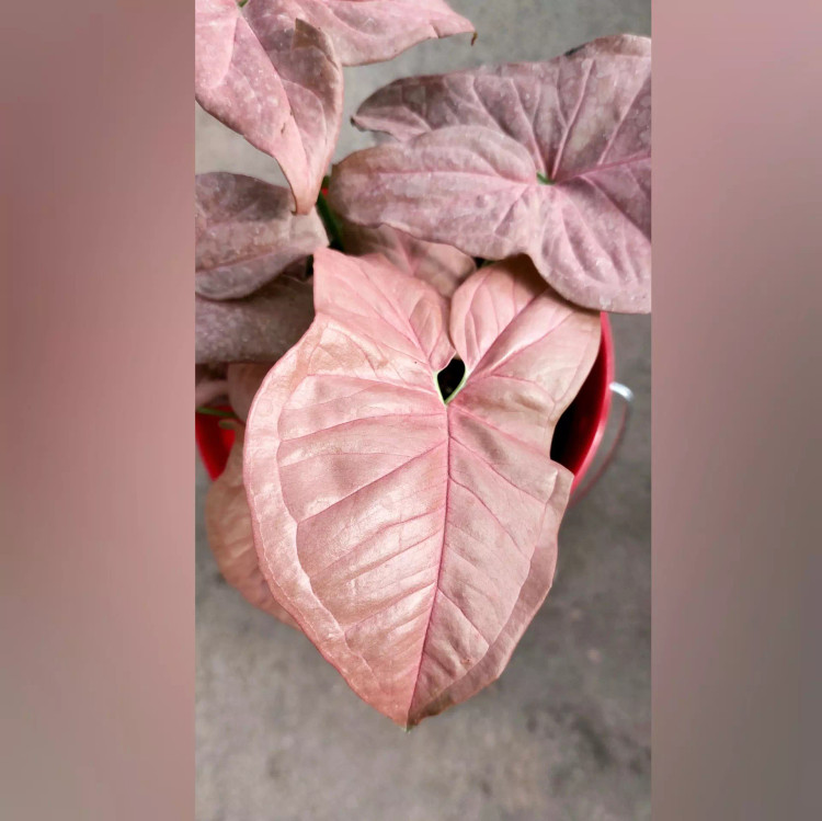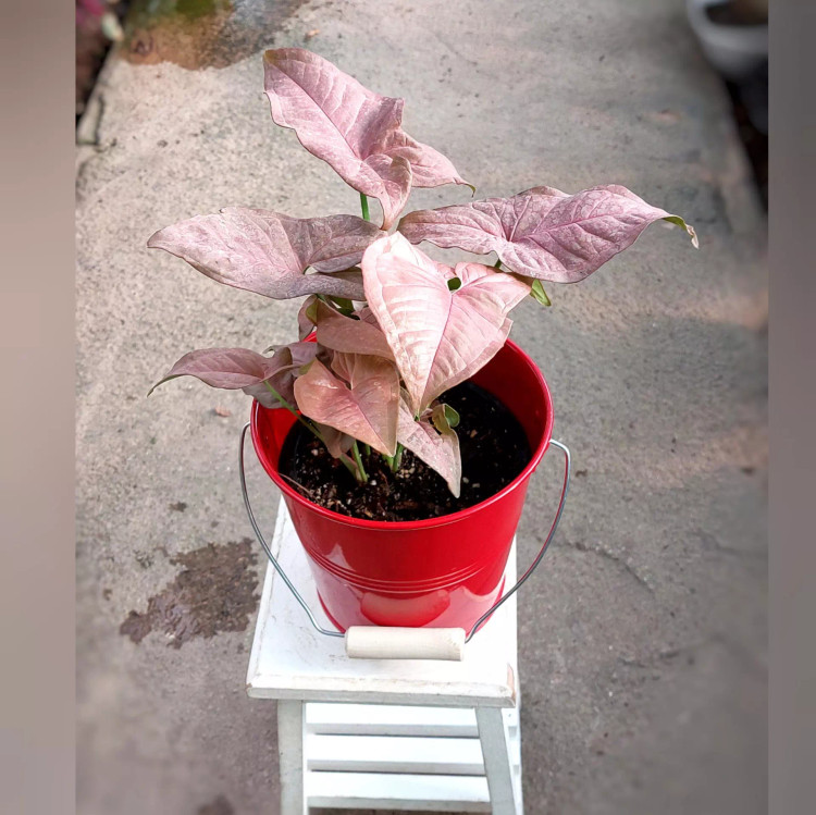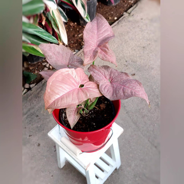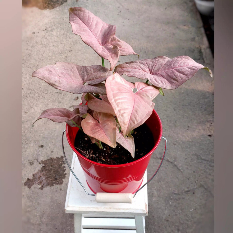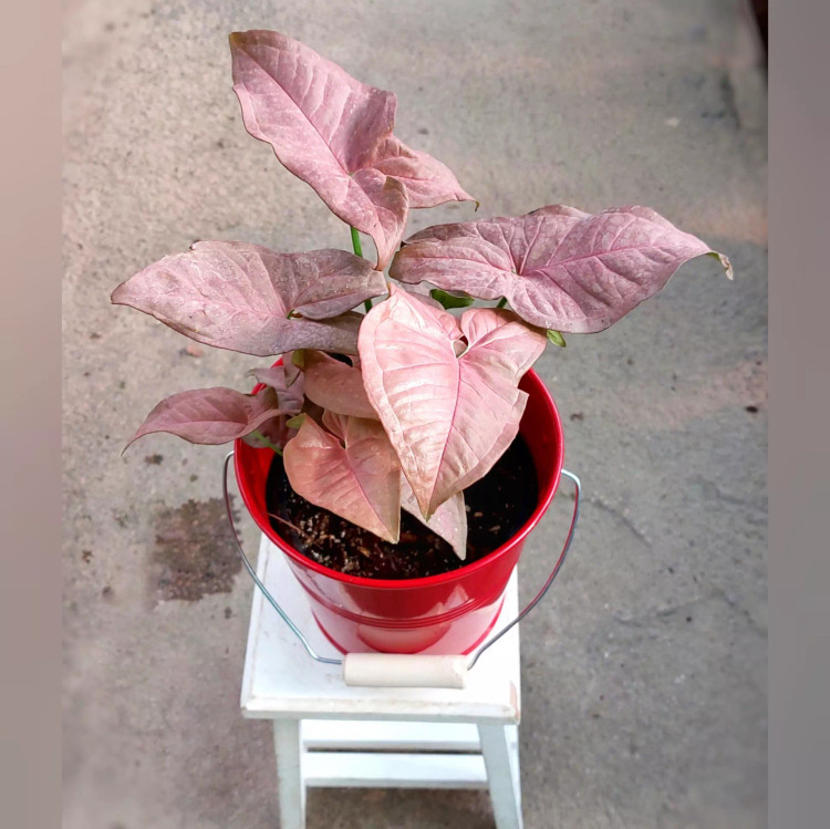 هدیه یلدایی گل سینگونیوم صورتی به همراه گلدان فلزی بسیار زیبا و با کیفیت