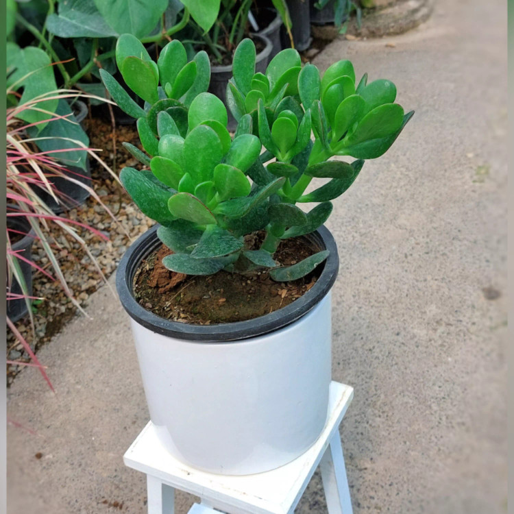 گیاه کراسولا یشم با گلدان سرامیکی