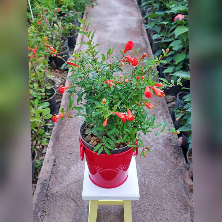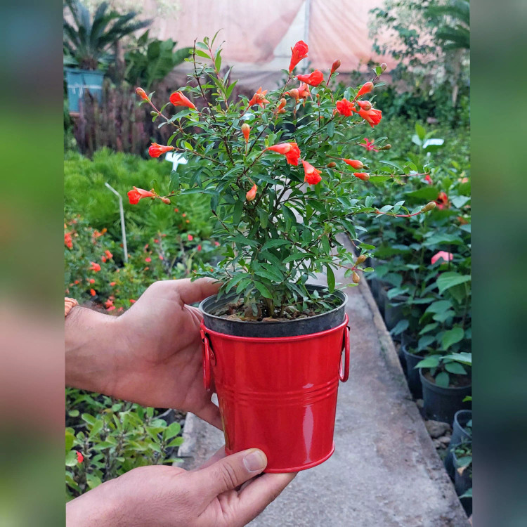 انار زینتی همراه با گلدان فلزی یک هدیه جذاب برای شب یلدا