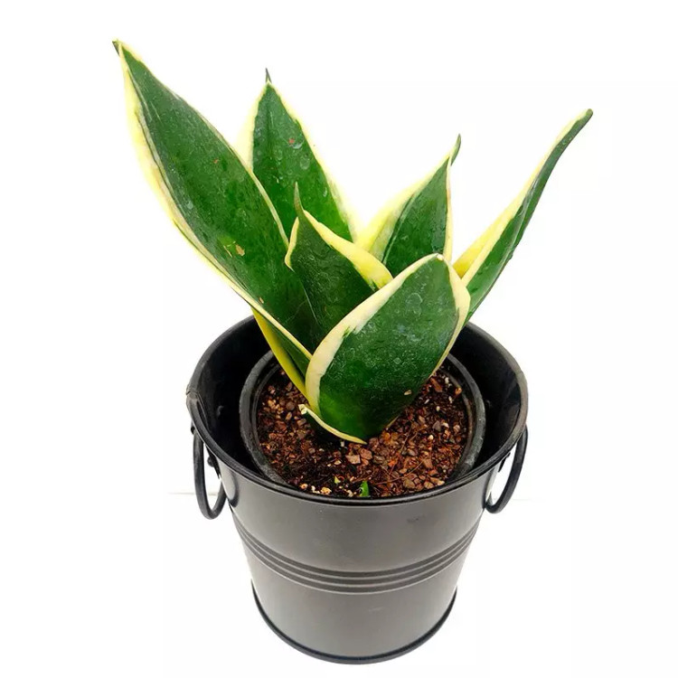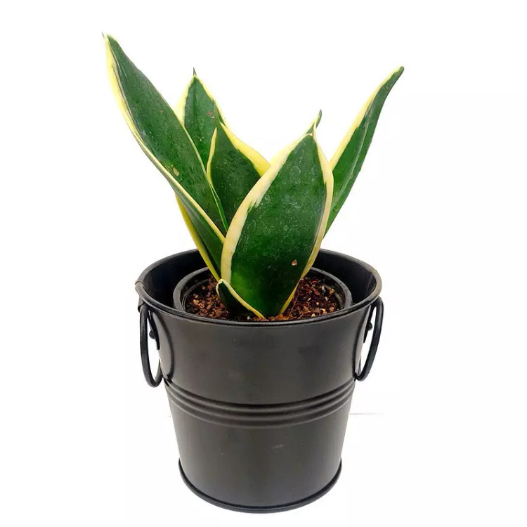 سانسوریا بلک گلد گیاه آپارتمانی با گلدان فلزی مقاوم با ارتفاع حدود 30 سانتی متر