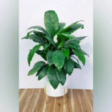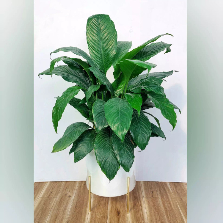 گیاه اسپاتی فیلوم به همراه گلدان فلزی پایه دار با قطر 21 سانتی متر