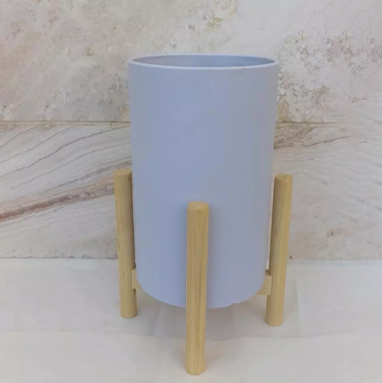 گلدان پلیمری استوانه به همراه پایه چوبی زیبا با ابعاد 15 در 35 سانت