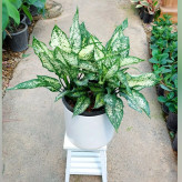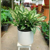 گیاه آگلونما سفید برفی پر غلاف با گلدان سرامیکی