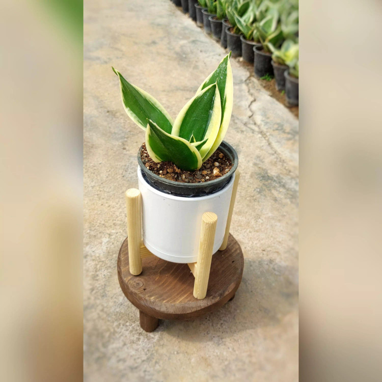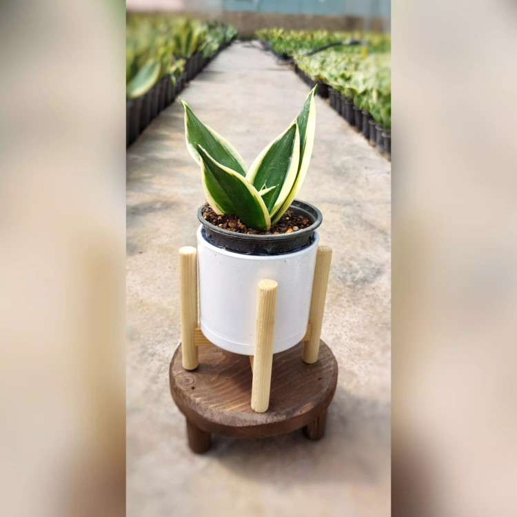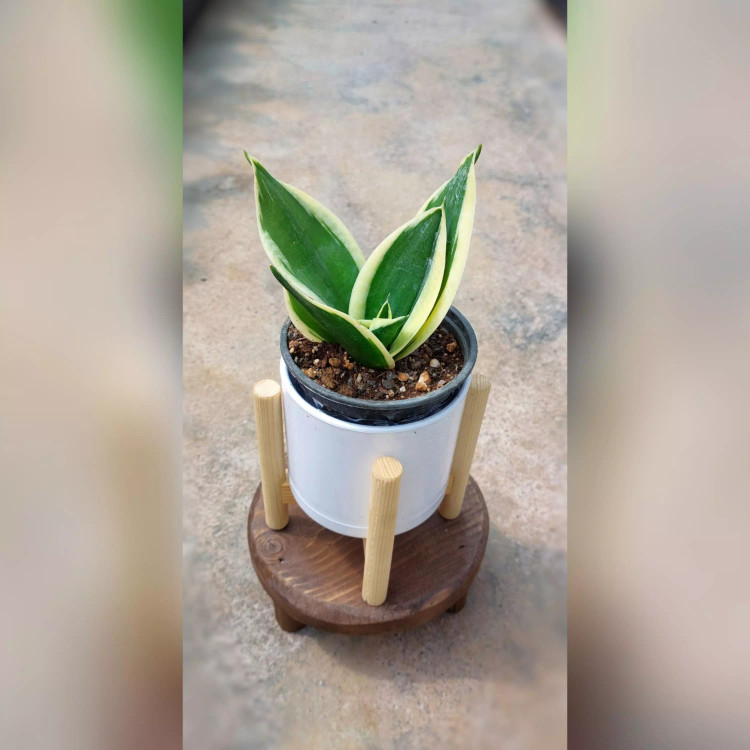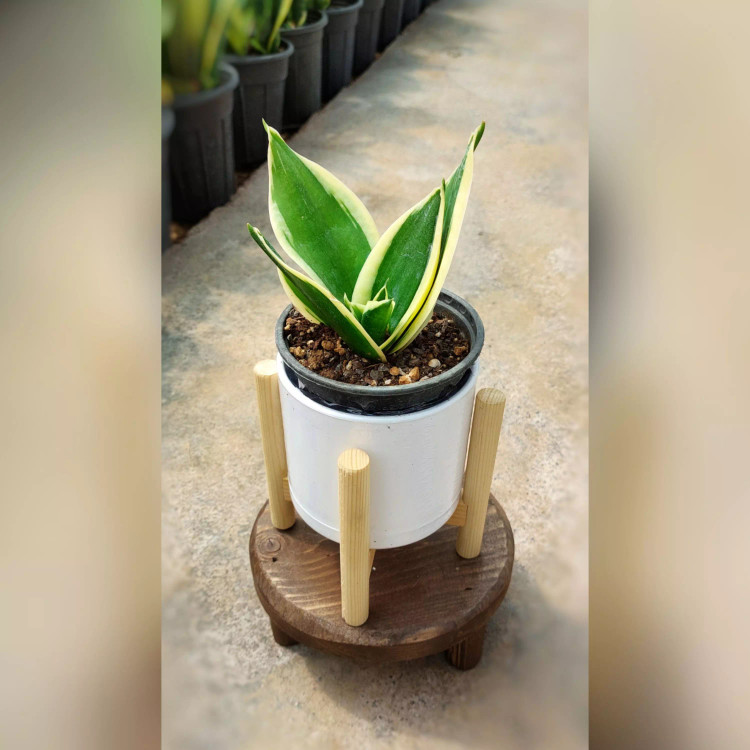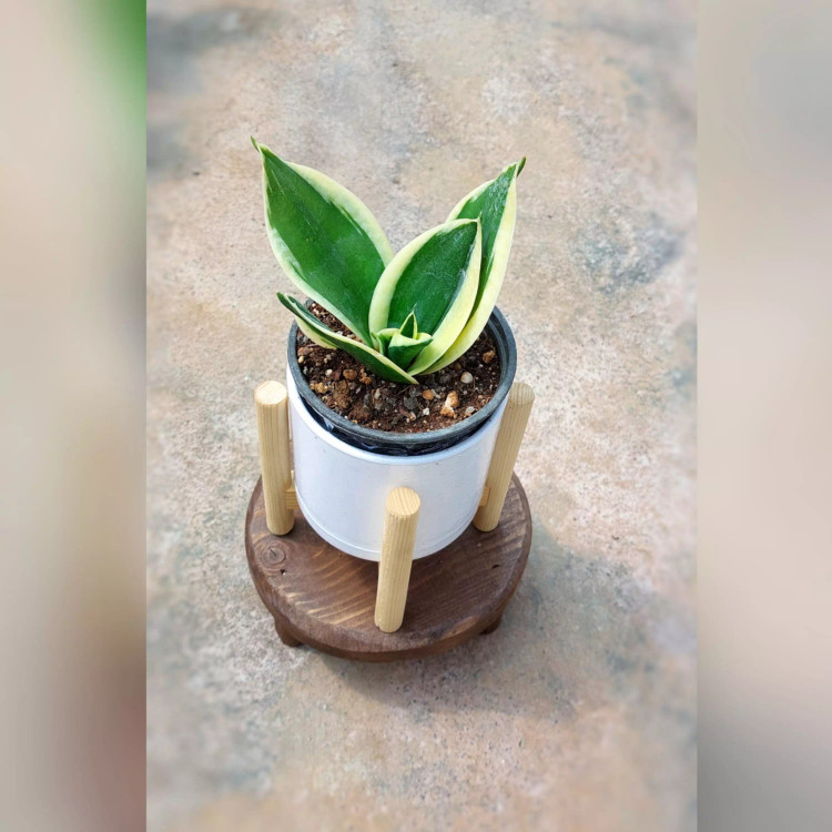 گیاه سانسوریا بلک گلد به همراه گلدان پلیمری نشکن و زیر گلدانی