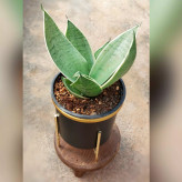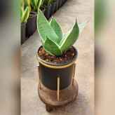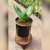 گیاه سانسوریا سیلور گلد به همراه گلدان آلومینیومی پایه دار فلزی