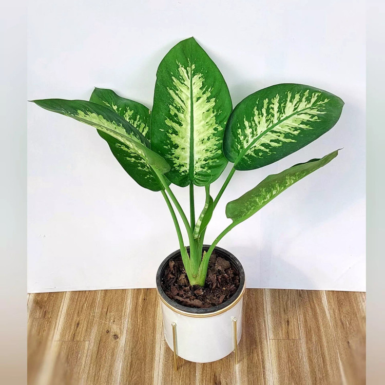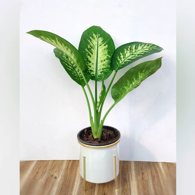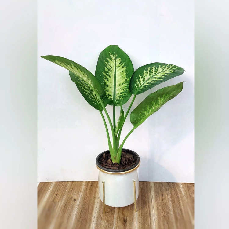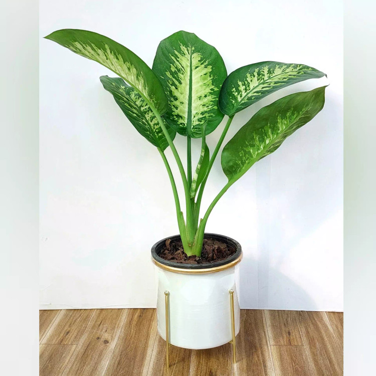 گیاه دیفن باخیا به همراه گلدان فلزی پایه دار با قطر 17 سانتی متر