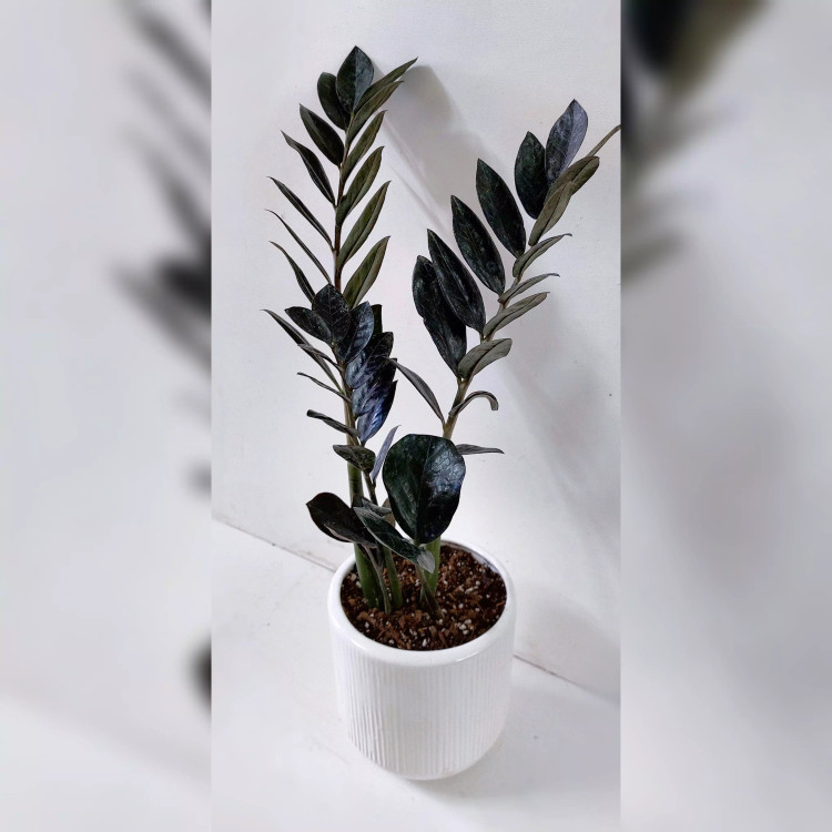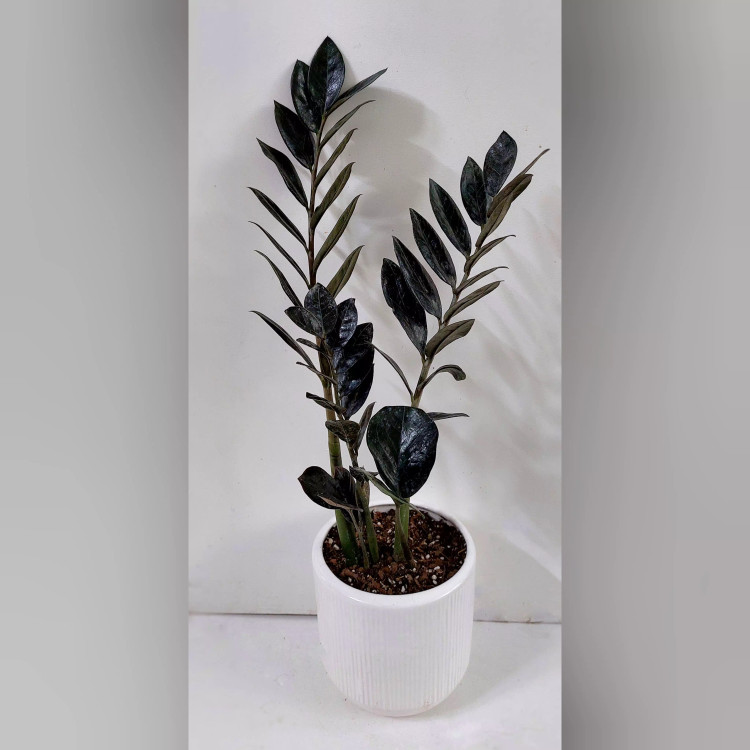 زاموفیلیا بلک گیاه خاص و شیک به همراه گلدان سرامیکی