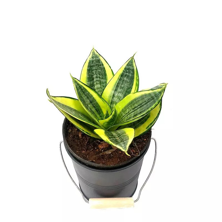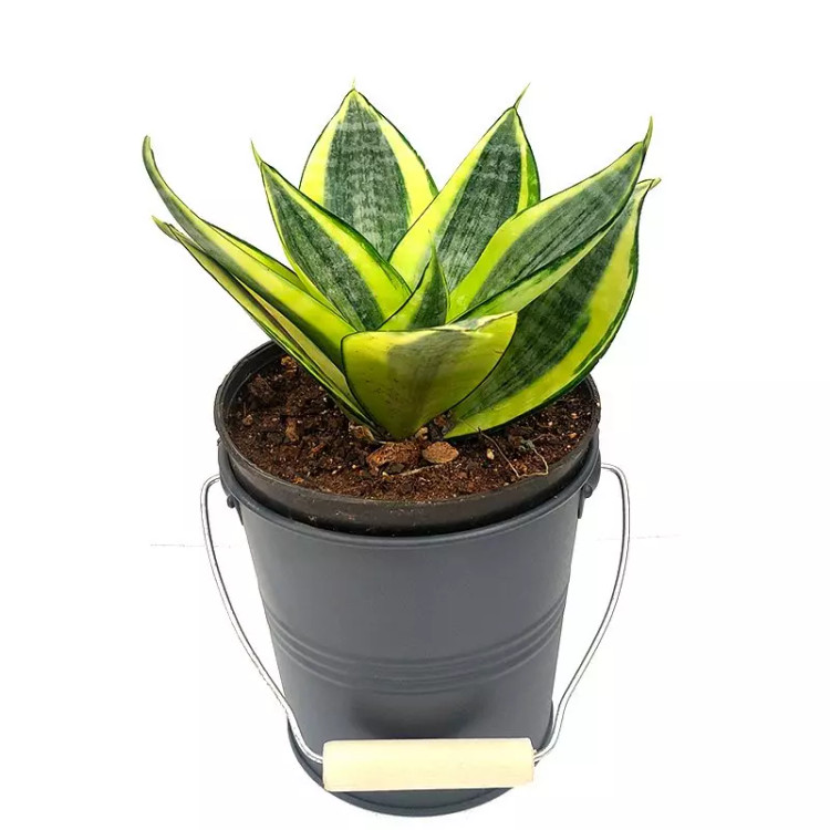 سانسوریا هانی گلد گیاه آپارتمانی با گلدان فلزی مقاوم با ارتفاع حدود 30 سانتی متر