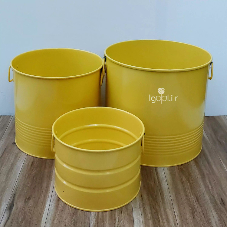 گلدان فلزی لاین پک سه عددی رنگ زرد ( قطر 25 قطر 22 و قطر 18 )