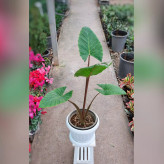 بابا آدم تنه قرمز ( آلوکازیا ) گیاه آپارتمانی با گلدان پلاستیکی