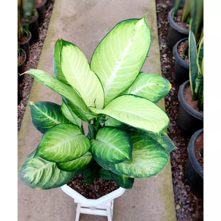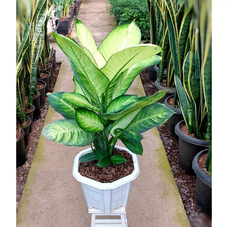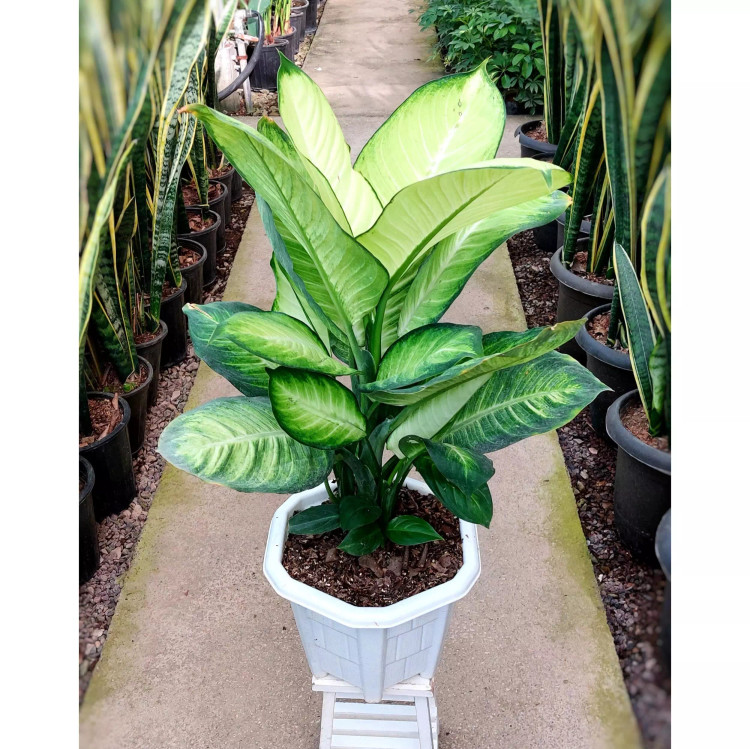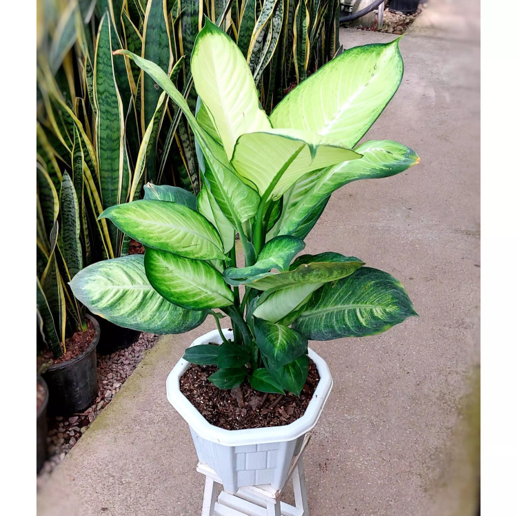 گیاه دیفن کاملیا بسیار زیبا به همراه گلدان پلاستیکی