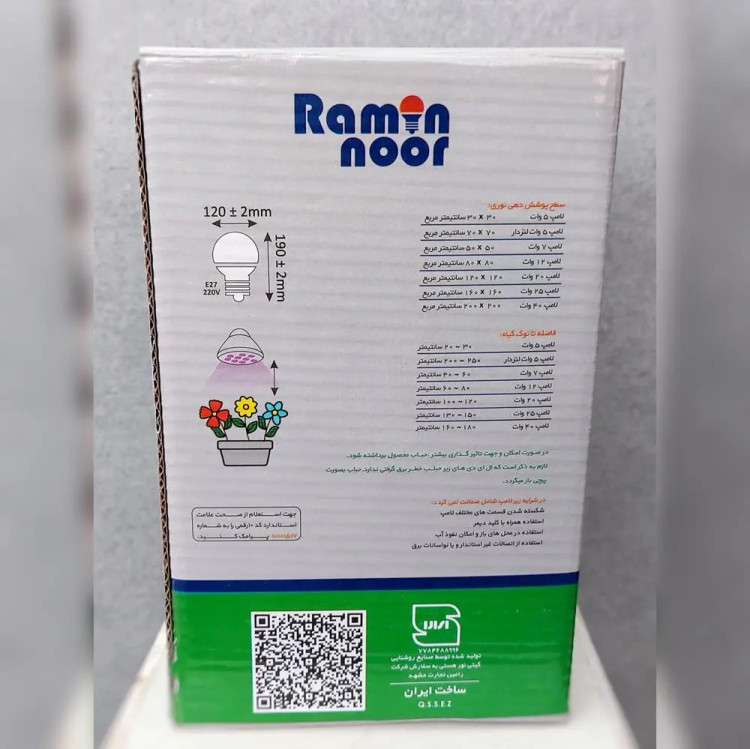 ابعاد: 5.5x5.5x11 سانتیمتر وزن: 55 گرم ولتاژ : 220 ولت توان: 5 وات فرکانس:50 هرتز بازه توان مصرفی: تا 5 وات رده مصرف انرژی: A++ جنس محافظ: پلی کربنات زاویه نوردهی: 240 شکل: حبابی 💡لامپ های رشد گیاه در 2 دسته فول طیف و فول اسپکتروم تولید شده که فول طیف برای رشد عمومی گیاه از قبیل رشد برگ و گل و میوه و فول اسپکتروم برای رشد ریشه و ساقه و جوانه گیاه مورد استفاده قرار میگیردند. 💡میزان سطح فضای اشغال محل نصب و میزان فاصله لامپ یا چراغ از نوک گیاه و میزان سطح پوشش دهی آن بر هر توان متغییر بوده که توضیحات تکمیلی بر روی جعبه درج گردیده 💡توجه داشته باشید که برای عملکرد بهتر نور لامپ یا چراغ باید بصورت عمودی بر سطح گیاه تابیده شود. 💡برای تاثیر گذاری بیشتر میتوان حباب لامپ ها را جدا کرد تا نور مستقیم ال ای دی بر روی گیاه تابیده شود(لازم بذکر تست که ال ای دی های زیر حباب درمقابل هوای مرطوب یا قطرات آب خطر برق گرفتگی ندارن . 💡 نور ال ای دی های رشد گیاه هیچ خطری بر اندام انسان نداشته و میتوان آن را بعنوان شب خواب یا نور دکوری ه استفاده کرد لامپ رشد گیاه 🔮💡 اگر علاقمند به پرورش گل و گیاه هستید اما منزل شما نور کافی ندارد ،راه حل لامپ رشد گیاه است که به شما این امکان را میدهد گل مورد علاقتان را پرورش دهید،سبزی بکارید و از گل دادن گیاهتان لذت ببرید .👩🌾 طیف نور این لامپ ها مابین 400 و 800 نانومتر است برای پوست و سلامتی انسان هیچ ضرری ندارد پس با خیال راحت سفارش خودتان را ثبت کنید.🌿 تمامی گیاهان برای رشد و زندگی به نور خورشید نیاز دارند و لامپ های رشد گیاهان در مکان هایی که به نور خورشید دسترسی کافی نیست نقش خورشید را برای گیاه ایفاء میکند. به وسیله این لامپ ها میتوان در مکان های کم نور مانند آپارتمان، دفتر، مغازه، مطب و… به راحتی گل و گیاه پرورش داد.🌞❌️ مزیت استفاده از لامپ های رشد گیاهان✅️ ○امکان پروش انواع گیاهان بدون نور خورشید پرورش گیاهان خوراکی ارگانیک در خانه ○کاشت بذر و جوانه در خانه ○امکان نگهداری گیاهان در تمام مناطق خانه ○کاشت و پرورش گیاهان حساس به نور ○امکان کاشت طبقاتی که به فضای کمتری نیاز دارد ○امکان پرورش گیاهان با نیاز نوری زیاد در شهرهای ابری ○کاشت هیدروپونیک ○پرورش گیاهان آبزی 💡🪴لامپ های مخصوص رشد برای چه گیاهانی کاربرد دارد؟ برای تمامی گیاهان از جمله گلهای آپارتمانی و بیرونی حتی درختان میتوان استفاده کرد. گلهای آپارتمانی مانند کاکتوس، ساکولنت، شفلرا، سانسوریا (گل کراواتی)، شمعدانی، حسن یوسف، آگلونما، افوربیا، مرجان، سیکاس، کاج مطبق، آدنیوم، نخل مرداب، نخل ماداگاسکار، بنفشه آفریقایی، پتوس، اژدر، یوکا، سدوم، آلوورا، جنسینگ، بنجامین، فیکوس، گیاهان ابلق، شامادورا، برگ انجیری، باباآدم، انواع بونسای، گیاهان گوشتخوار، ونوس … گیاهان بیرونی مانند: گل کاغذی، داوودی، رز، گل محمدی، گیاه شاهدانه یا ماری جوانا، گلهای رونده … انواع صیفی جات و سبزیجات را نیز میتوان از طریق این لامپ ها در منزل پرورش داد مانند گوجه، فلفل، خیار، بادمجان، ریحان، کاهو، کرفس، پیازچه، ترب، جعفری و …