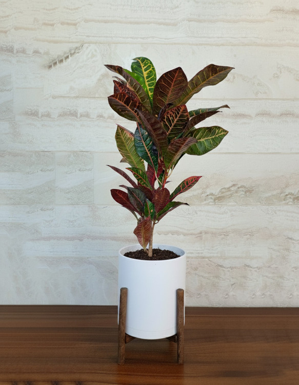 گیاه کروتون با گلدان پلیمری و پایه چوبی