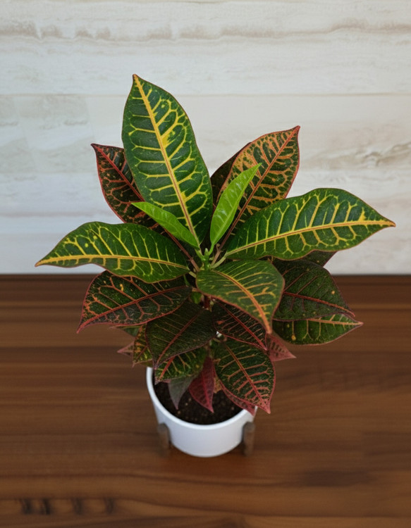 کروتون از خانوادهی Euphorbiaceae (فرفیون) است و به دلیل طرح و تنوع رنگ بالا، در دکوراسیون داخلی بسیار محبوب است.